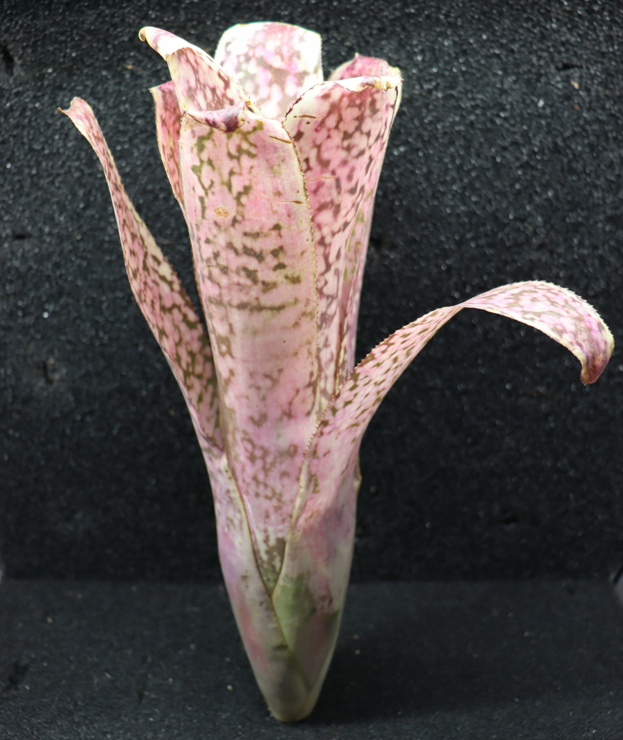 Maintenir un léger fond d’eau dans la rosette et brumiser régulièrement à l’eau non calcaire. Le support doit rester humide mais jamais détrempé.