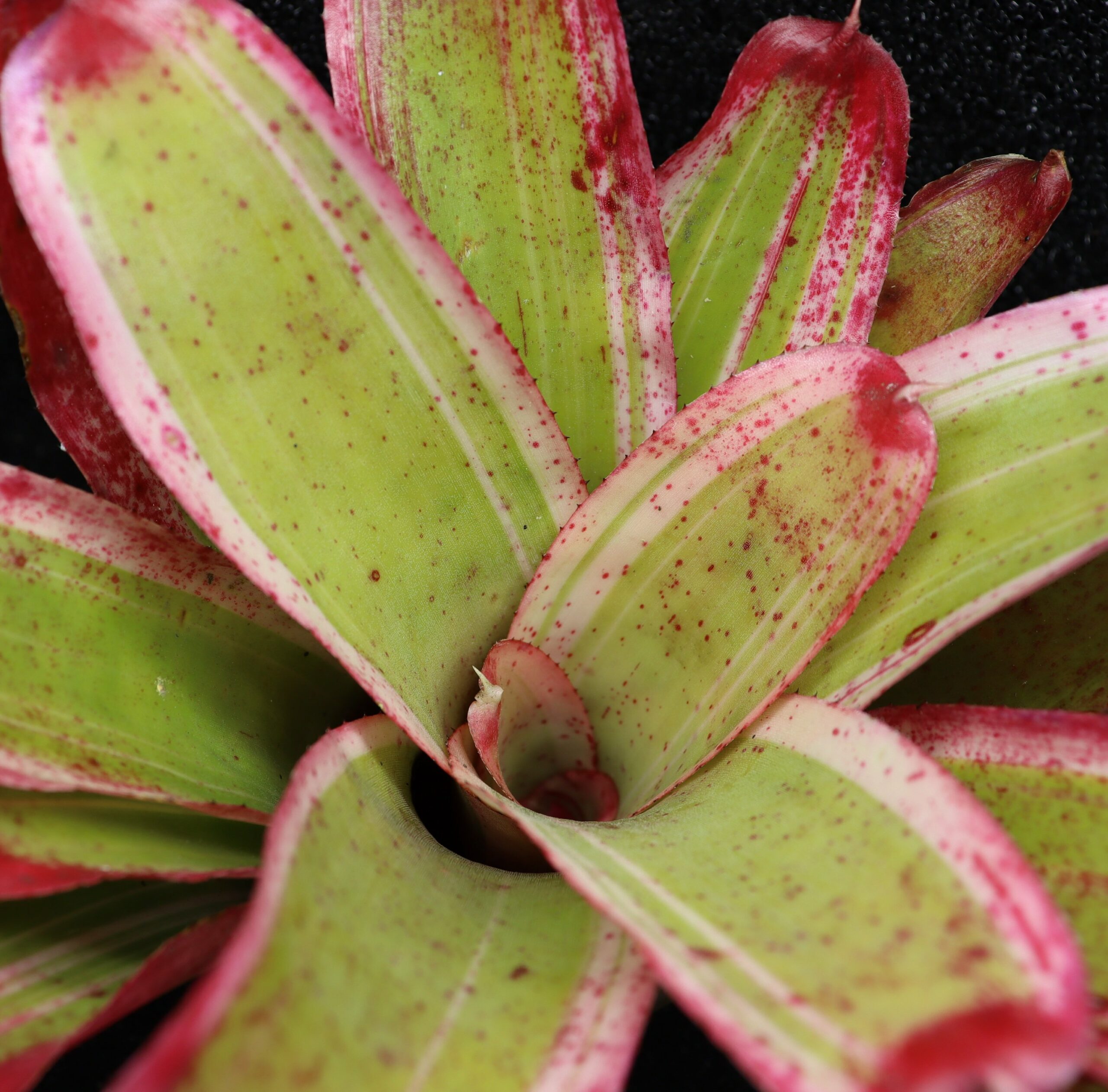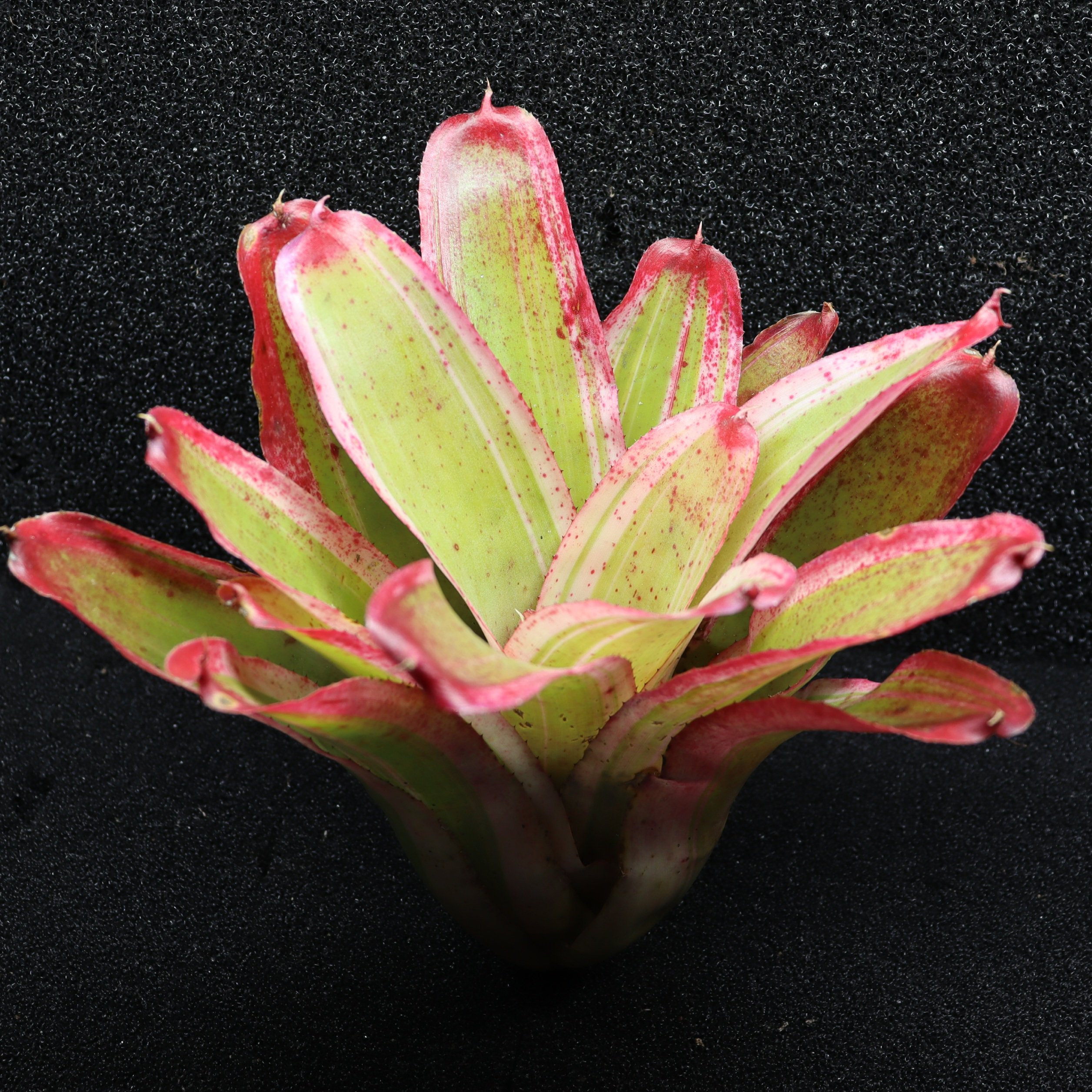 Hybride horticole du genre Neoregelia, issu de sélections à partir d’espèces originaires des forêts tropicales humides du Brésil.
