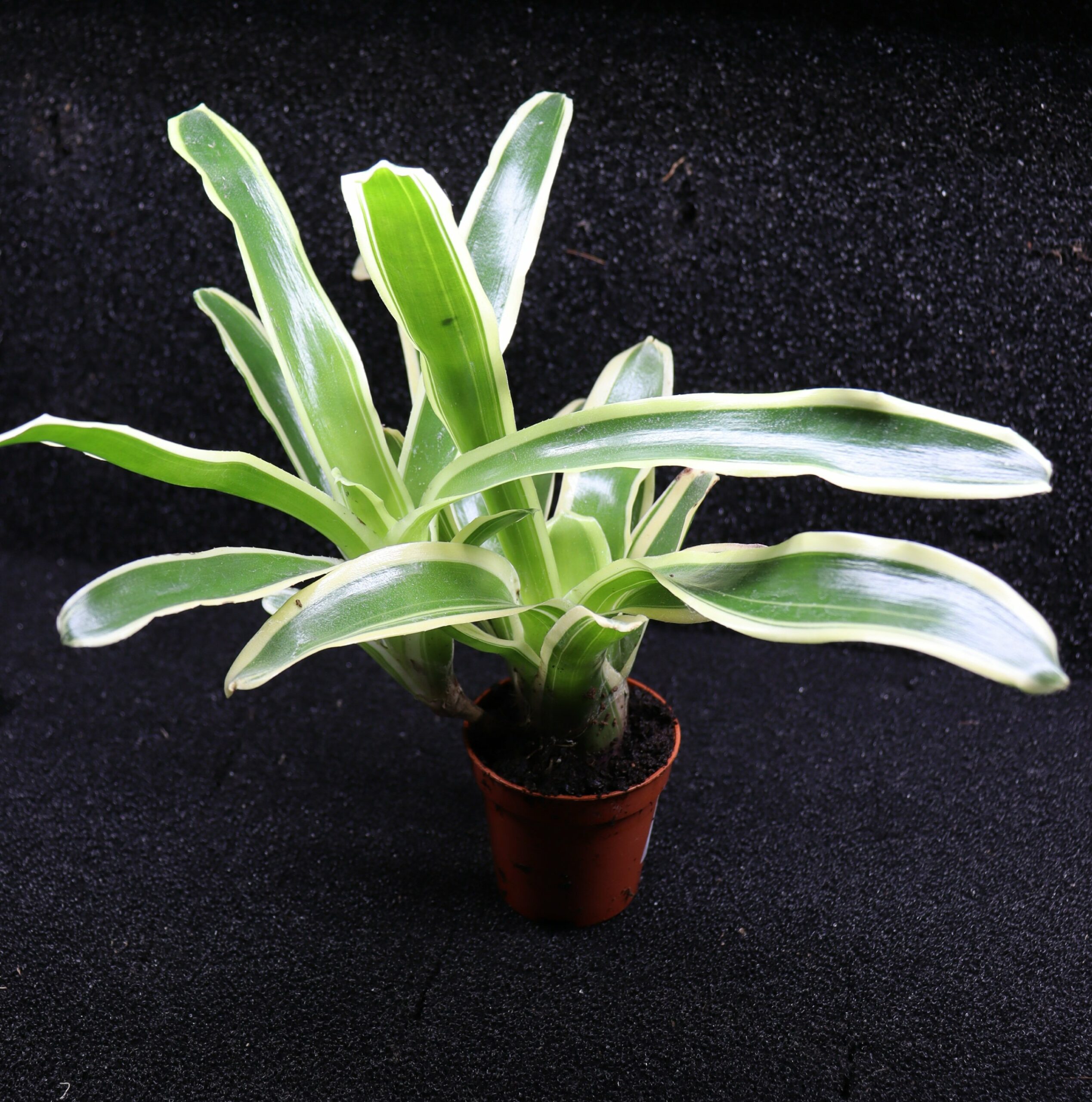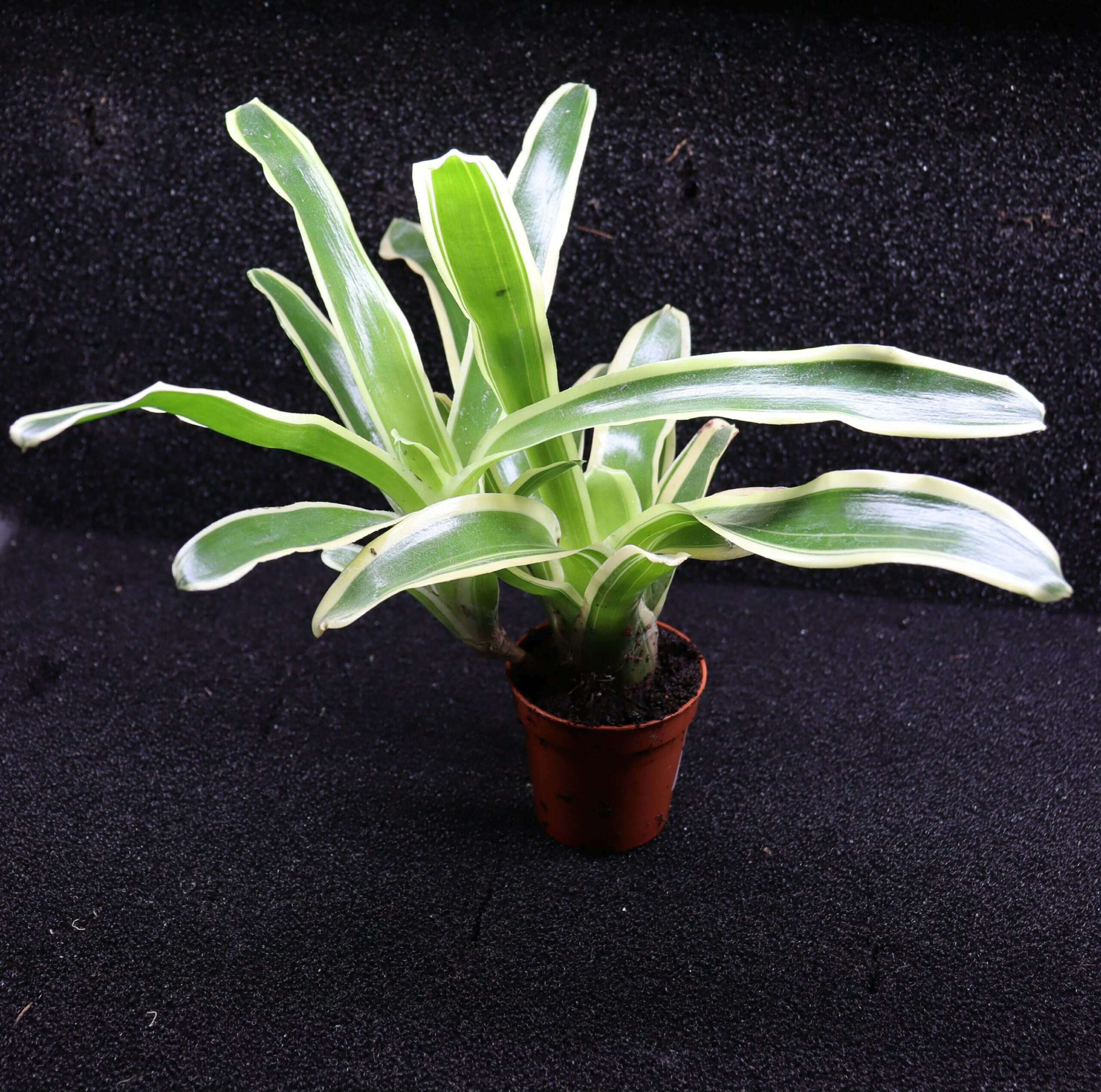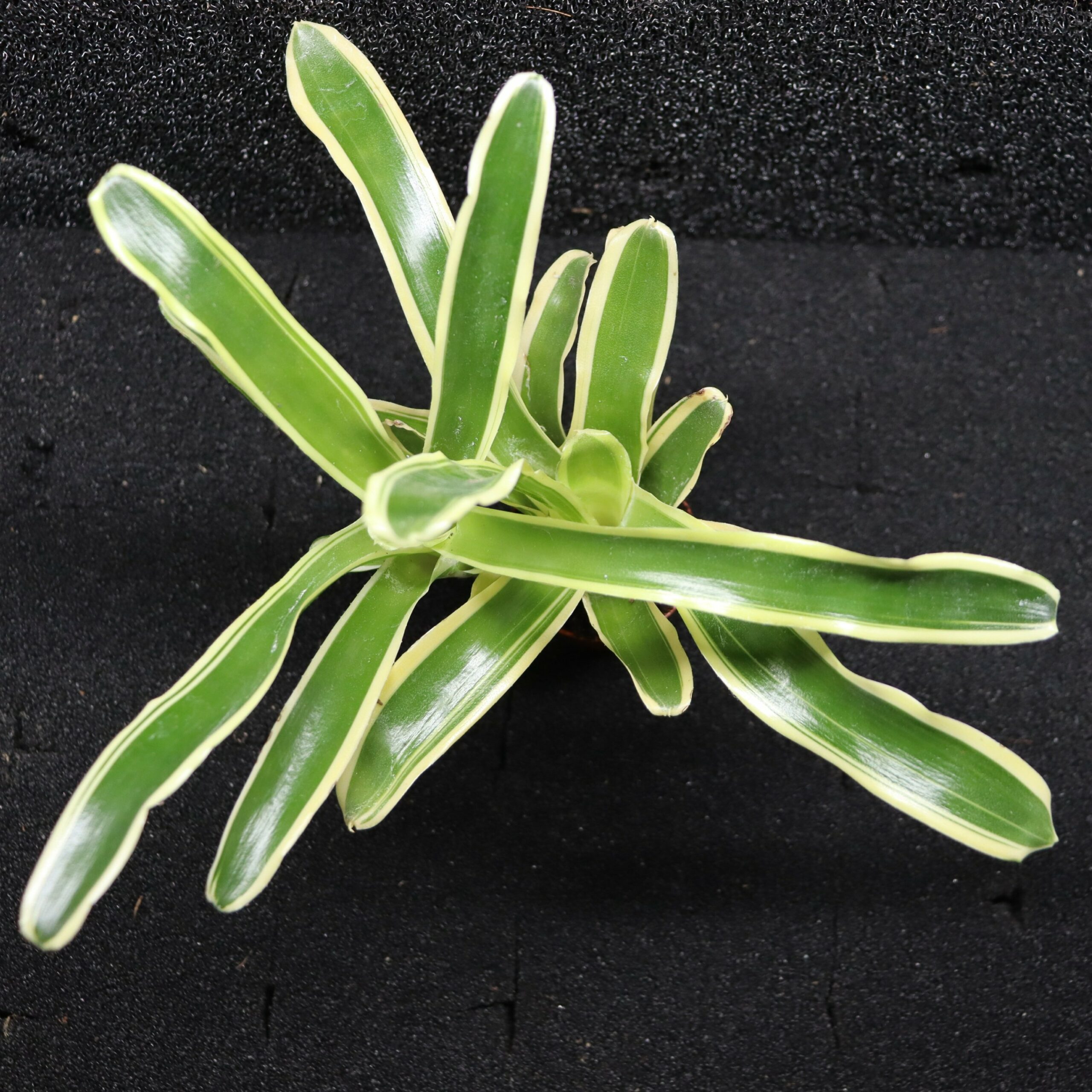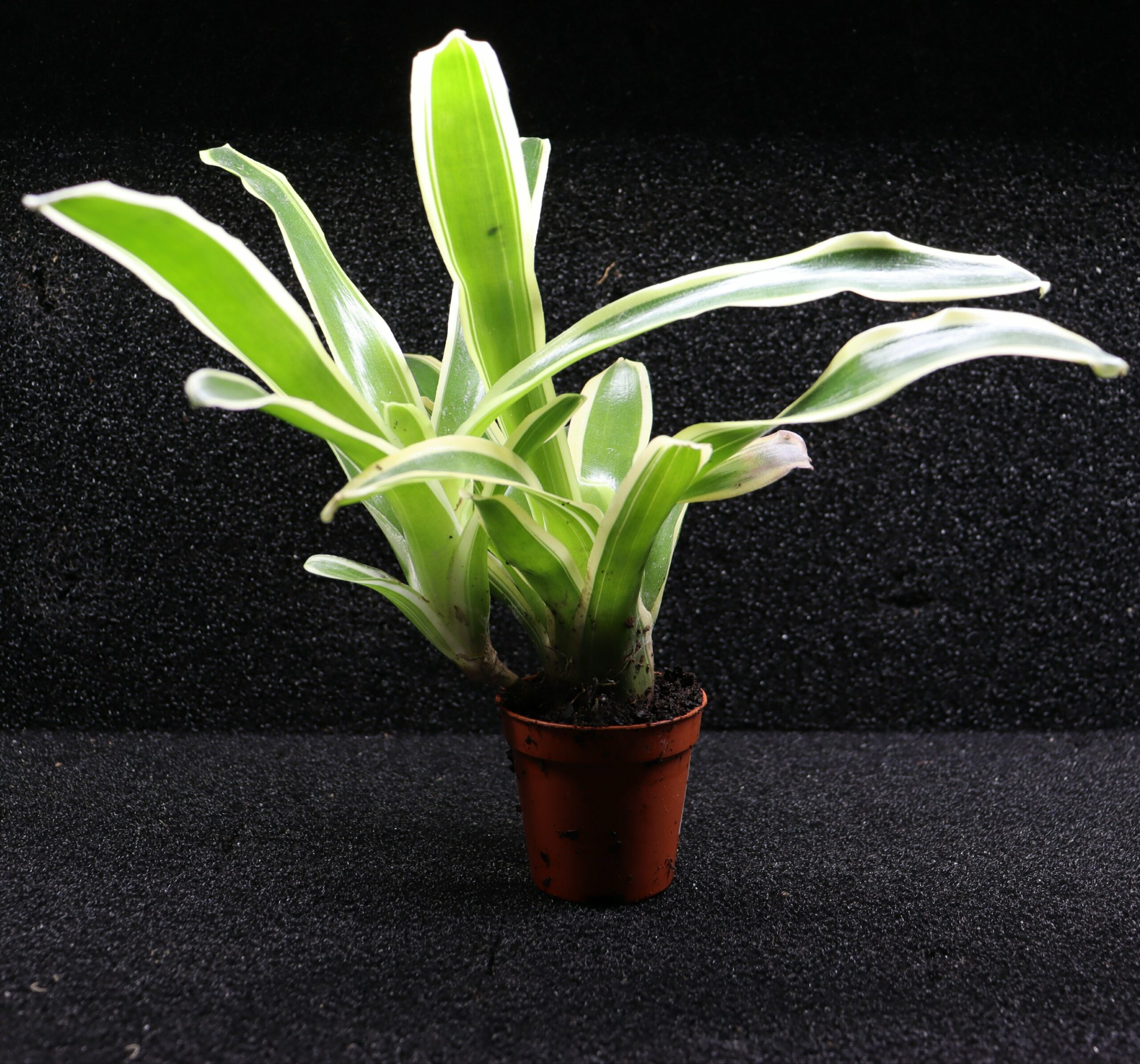 Cette variété panachée forme une rosette dense de feuilles fines, marquées de bandes crème à jaune pâle contrastant avec un fond vert qui peut évoluer vers le rose et le rouge vif. Sous un éclairage adapté, les couleurs gagnent fortement en intensité. Les éclairages SKYLIGHT, grâce à leur spectre puissant et équilibré, permettent de renforcer la panachure et d’obtenir des teintes rouges plus profondes et plus homogènes, mettant pleinement en valeur la plante.