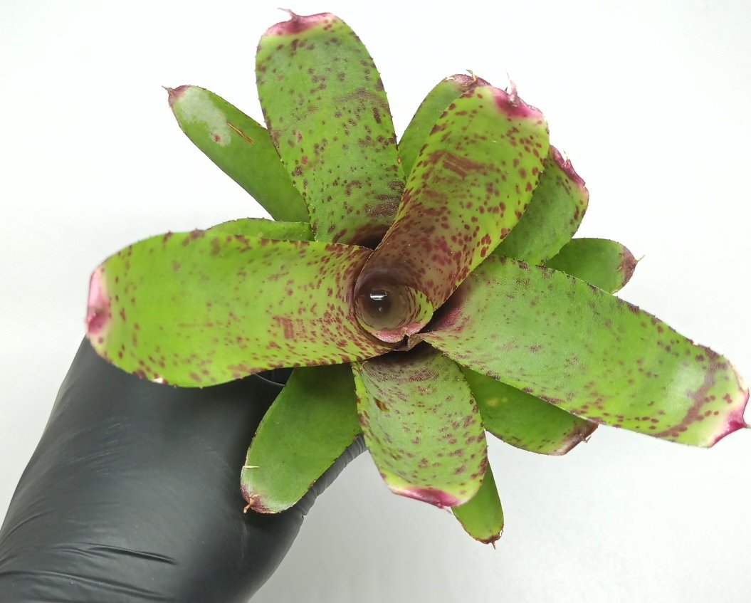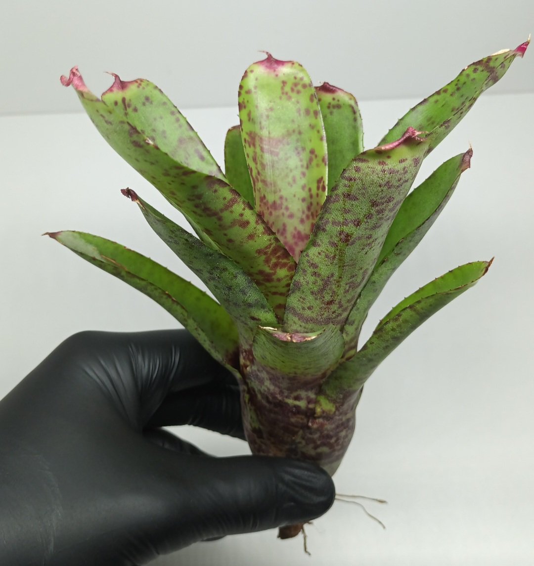 La Neoregelia ‘Guinea’ est une broméliacée aux feuilles larges et colorées, avec des teintes vives de vert et de rouge rosé qui s’intensifient sous une lumière indirecte vive. Adaptée aux terrariums tropicaux, elle prospère dans une atmosphère humide et nécessite peu d’entretien. Son feuillage lumineux ajoute un contraste saisissant et une touche tropicale élégante aux écosystèmes miniatures.