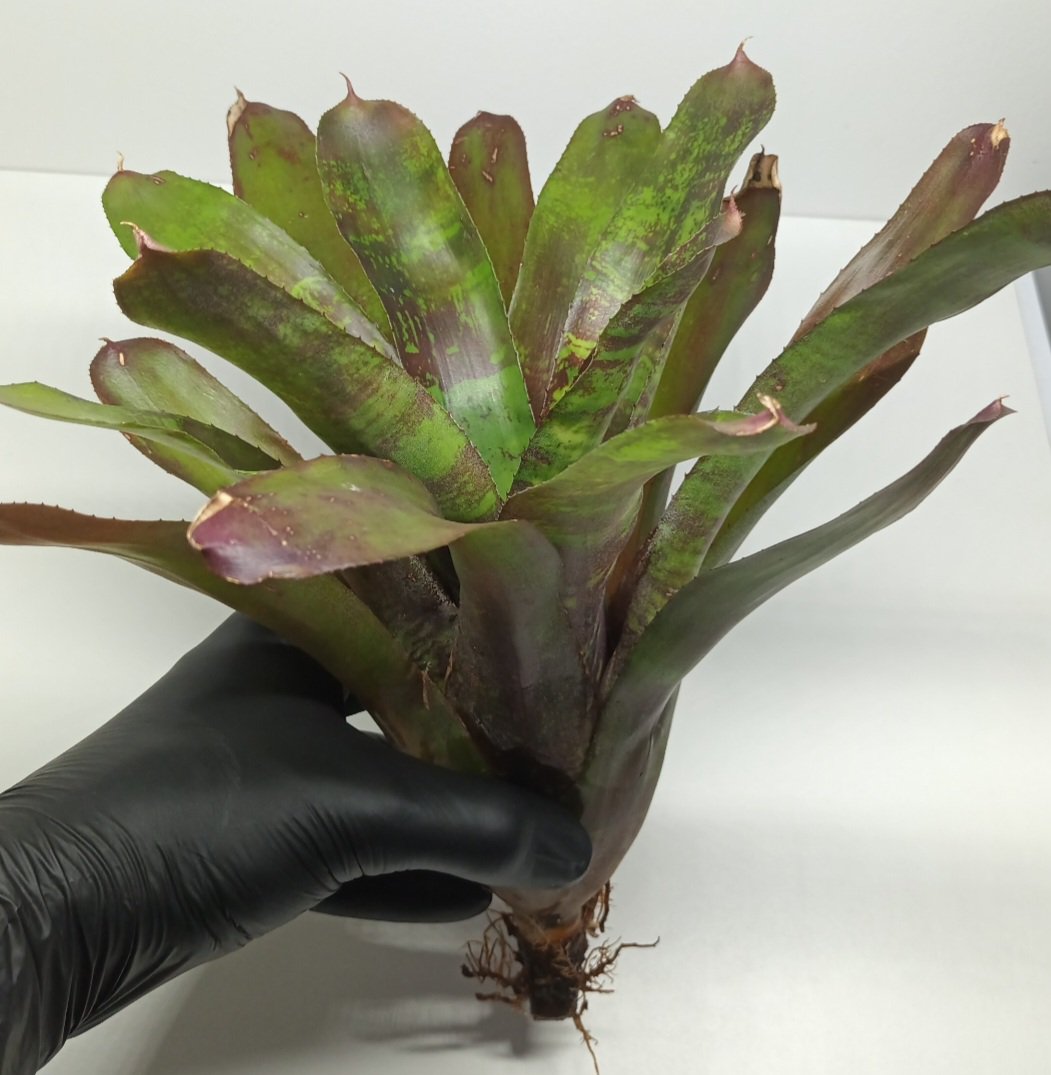 Neoregelia ‘Red River’ est une broméliacée compacte idéale pour les terrariums tropicaux humides. Elle forme une rosette dense aux feuilles vert foncé éclaboussées de rouge profond, avec un centre rouge intense qui s’accentue à la lumière vive. Comme toutes les Neoregelia, elle absorbe l’eau principalement par sa rosette centrale, qu’il faut maintenir humide. Elle préfère une forte humidité, une bonne ventilation et une lumière indirecte. Son feuillage spectaculaire apporte une touche exotique et colorée en terrarium.