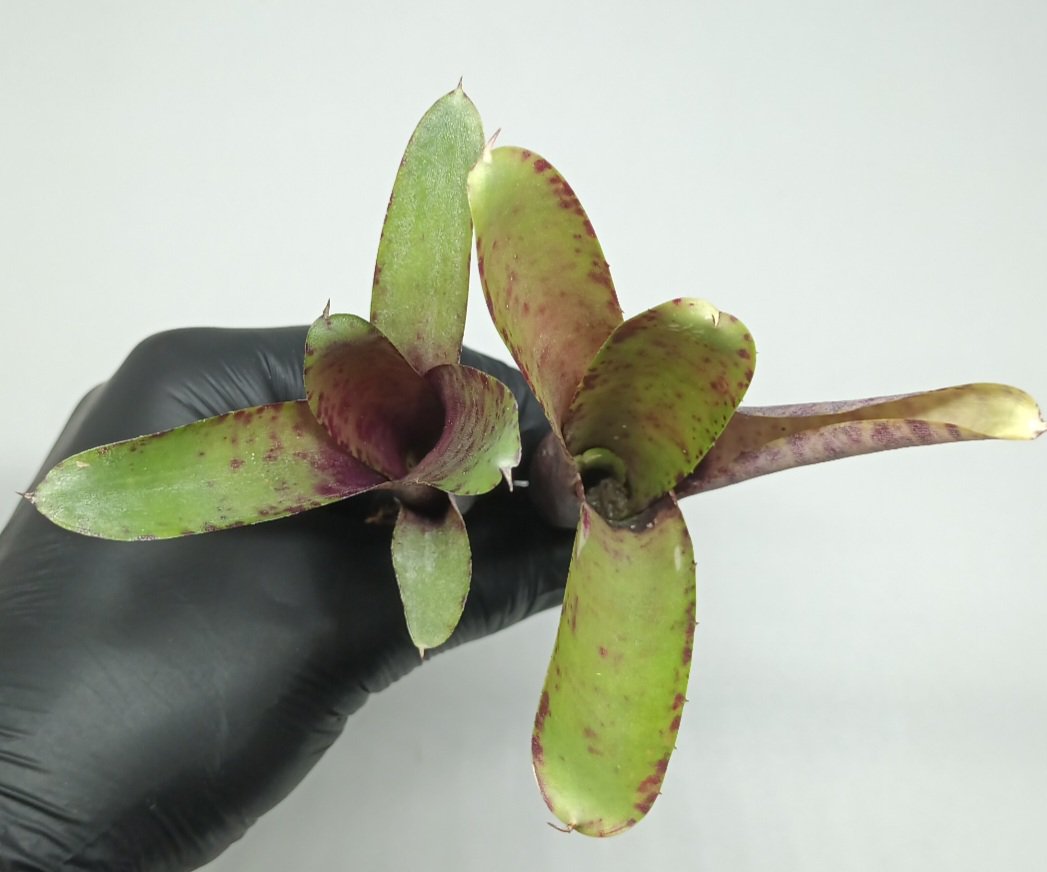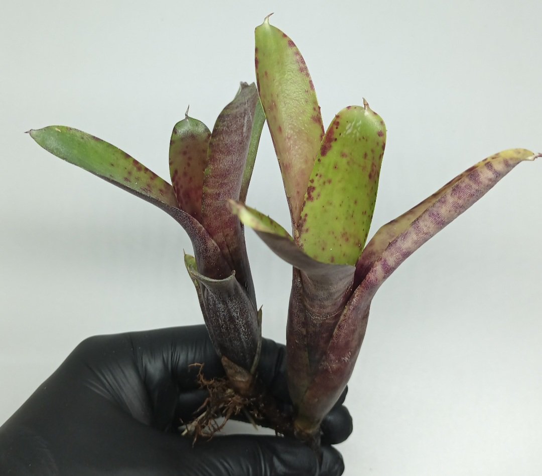 Neoregelia roethii est une broméliacée compacte idéale pour les terrariums tropicaux. Elle présente des feuilles larges et souples, souvent teintées de vert et de pourpre, formant une rosette qui collecte l’humidité. Adaptée aux environnements humides et lumineux, elle prospère avec une hygrométrie élevée et un éclairage modéré à intense. Sa croissance lente et son port bas en font une excellente plante d’accent pour les terrariums de dendrobates ou d’autres espèces tropicales.