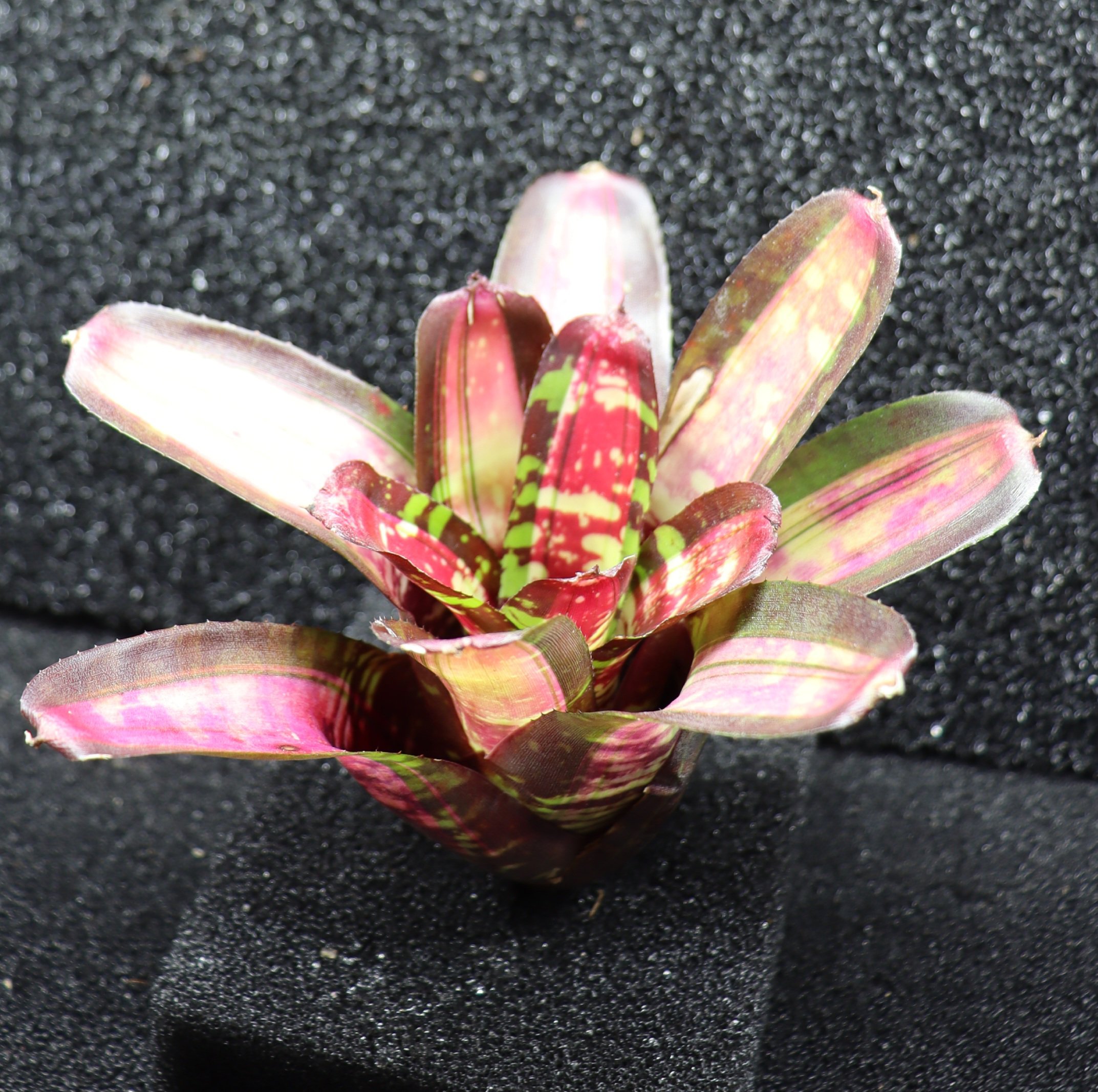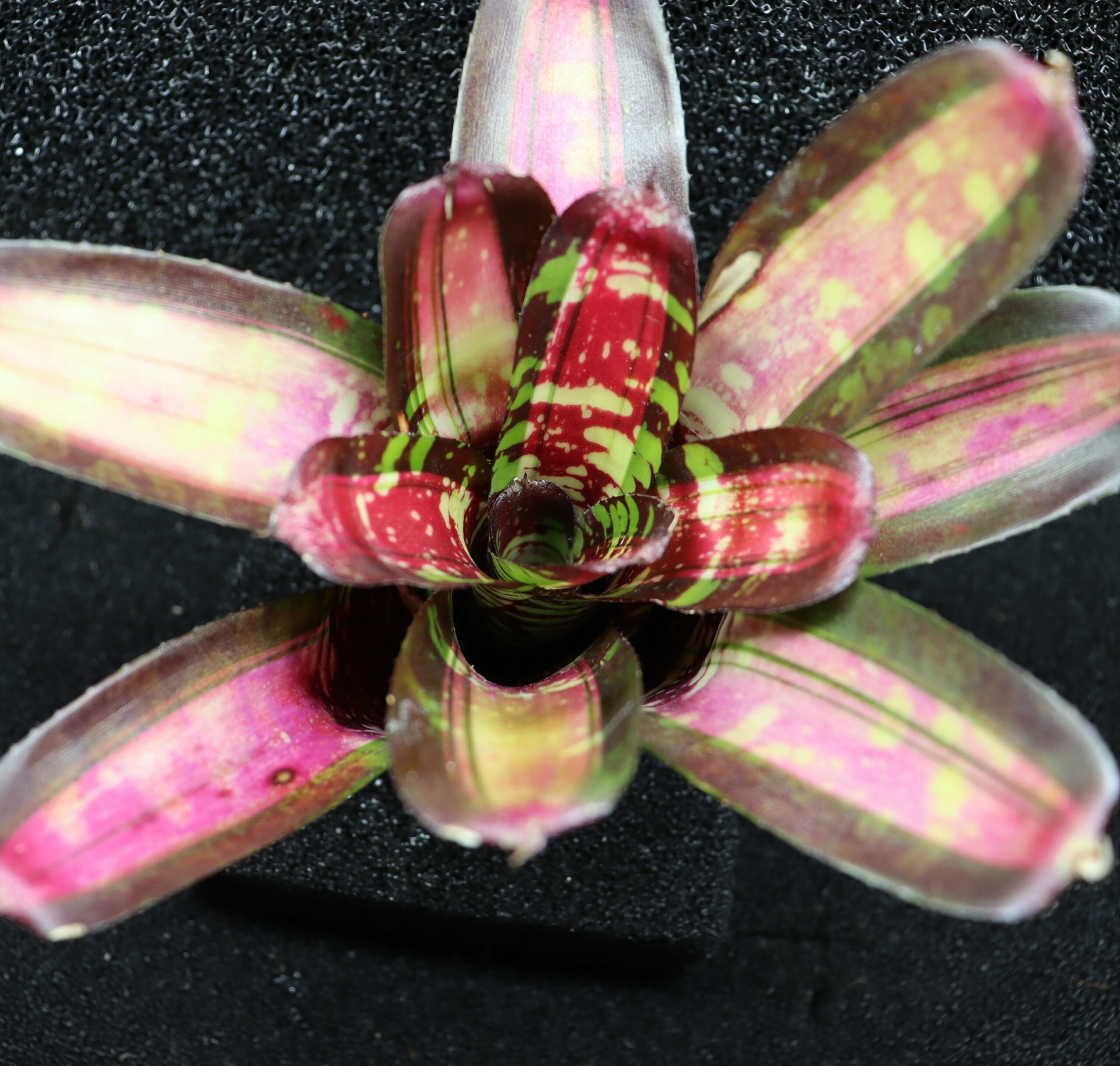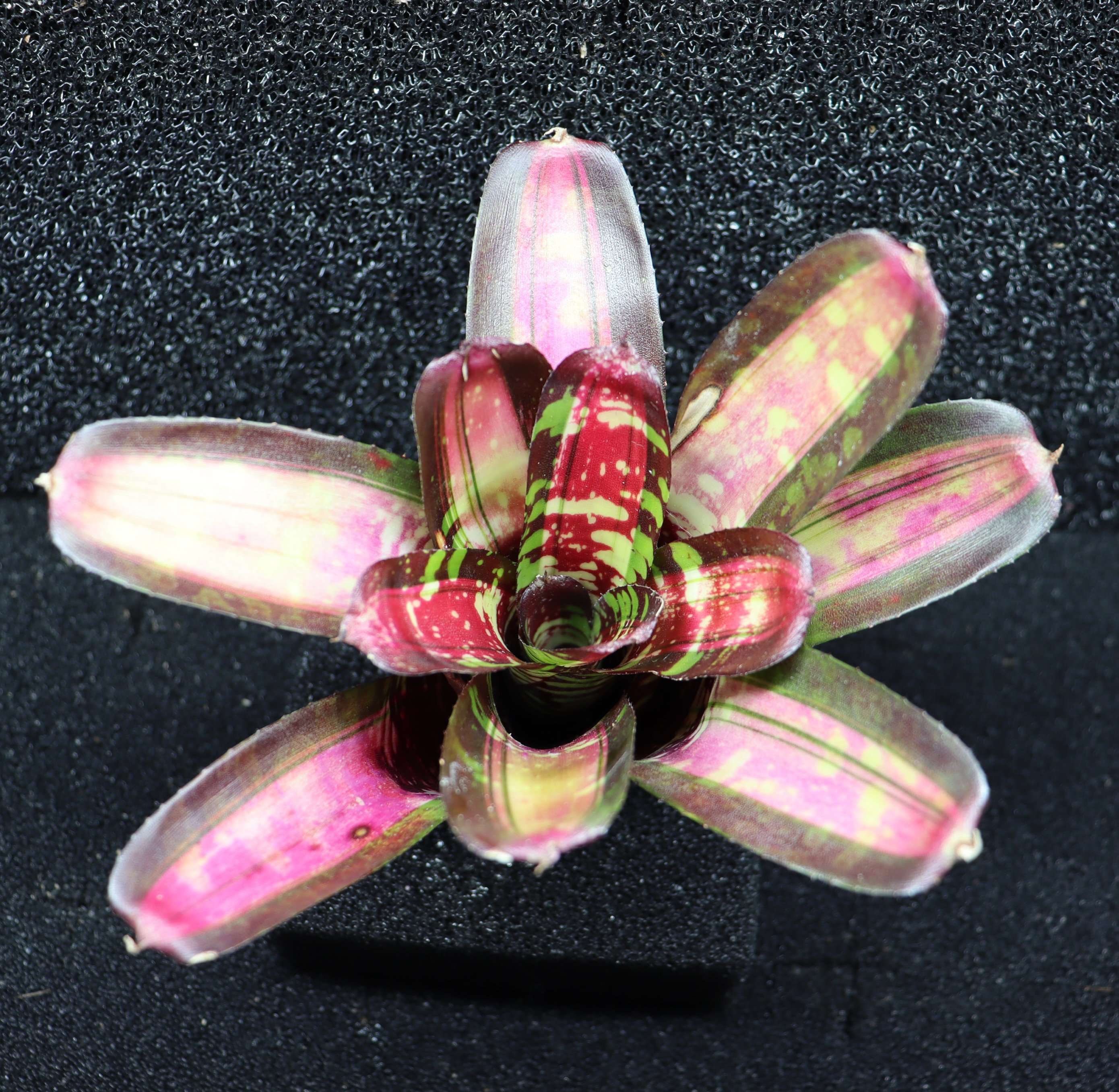 Origine : Hybride horticole, issu de sélections ornementales à partir d’espèces brésiliennes du genre Neoregelia.
