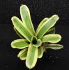 Neoregelia ‘Zeppo’ est une broméliacée de petite à moyenne taille (12 à 18 cm de diamètre), formant une rosette dense et bien structurée. Son feuillage lisse, rigide et disposé en étoile affiche une teinte de fond vert clair à jaune pâle, surmontée de motifs marbrés, mouchetés ou striés de rouge, de rose framboise ou de pourpre vif. Le centre de la plante devient souvent plus intense à l’approche de la floraison, soulignant l’élégance graphique de ses contrastes. Son apparence éclatante en fait une pièce maîtresse idéale dans une composition végétale.