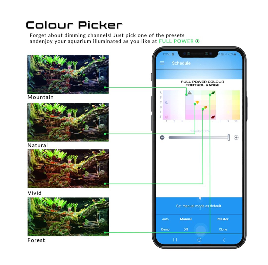 Chaque lampe SKYLIGHT PR2.Q est équipée d’un contrôleur WI-FI permettant d’ajuster précisément la puissance et la température de couleur.